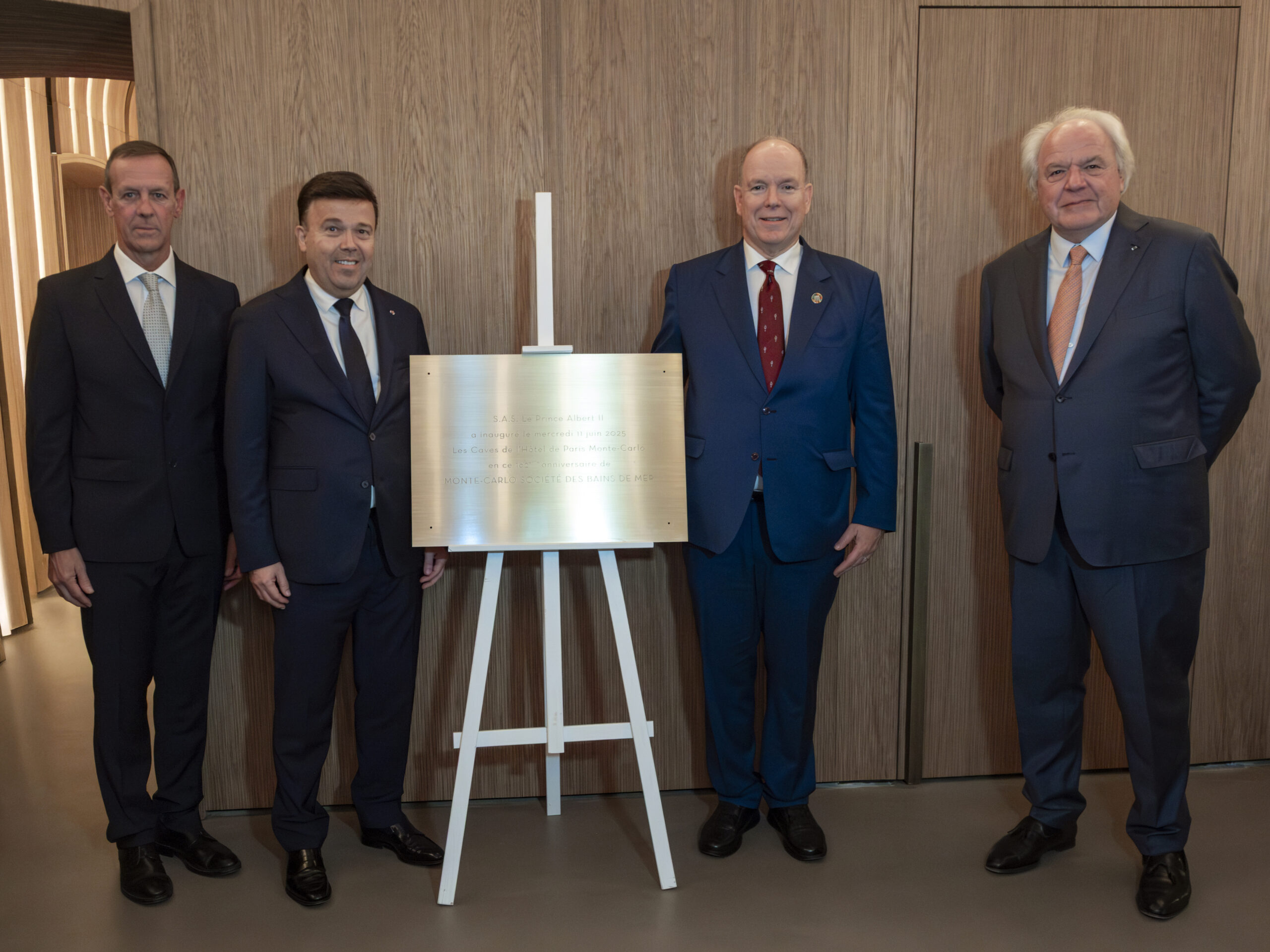 Inaugurazione delle Cantine dell’Hotel de Paris Monte Carlo in presenza del Principe Alberto. Nella foto accanto al Sovrano: Stéphane Valeri, Presidente-Delegato della Monte Carlo Société des Bains de Mer;