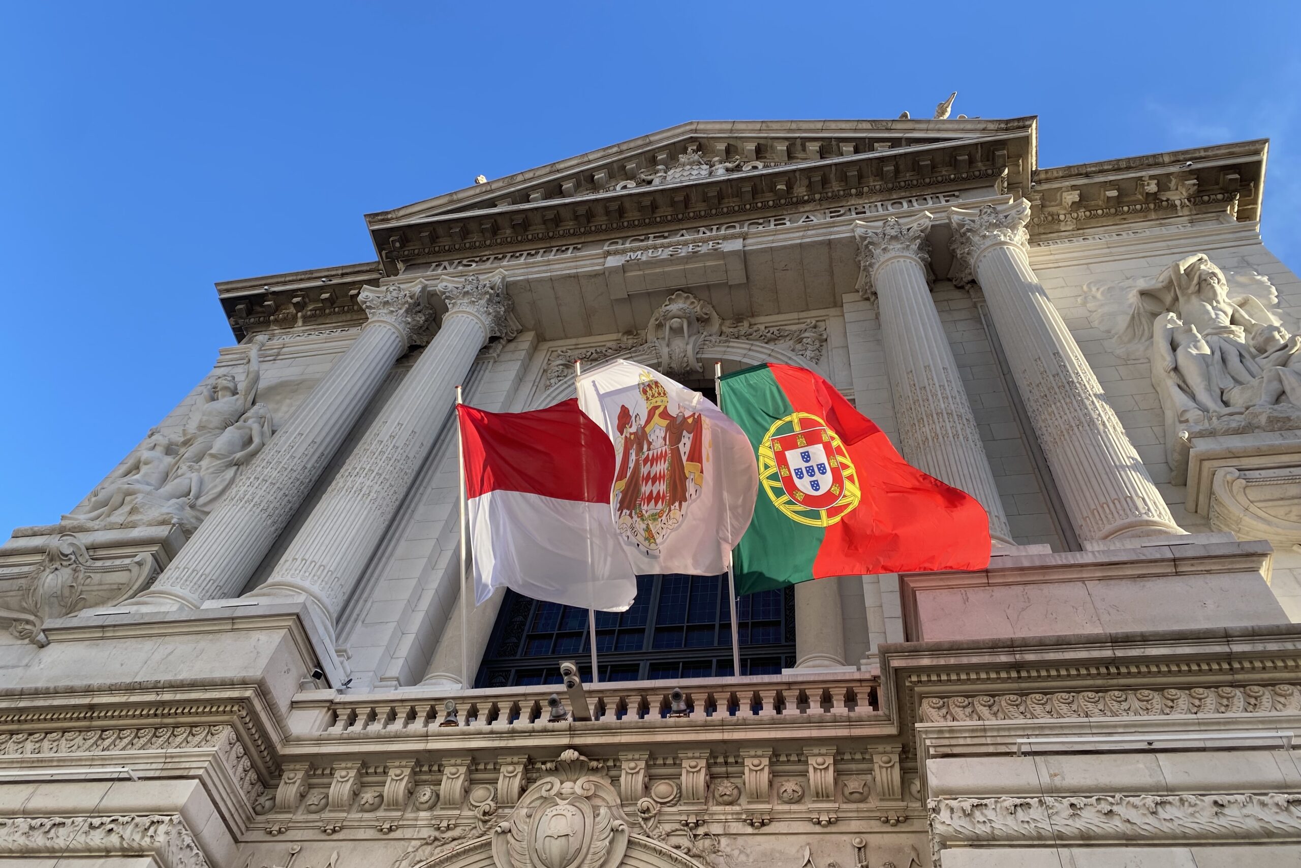 I Principi Alberto e Charlene Accolgono il Presidente del Portogallo Published 22 Novembre 2025 at 2560 × 1708 in Il Principe Alberto e la Principessa Charlene Accolgono il Presidente del Portogallo in Visita Ufficiale a Monaco ← Previous Next → Le bandiere del Principato di Monaco e del Portogallo sventolano sulla facciata del Museo Oceanografico; Ft©arvalens
