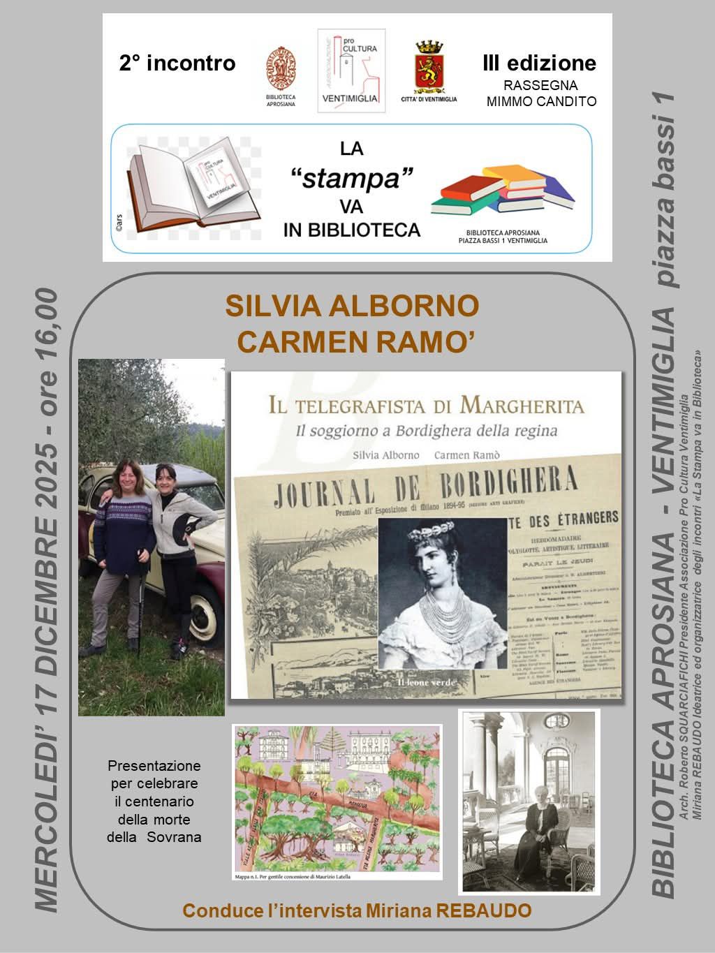 La Stampa Va In Biblioteca Ventimiglia Regina Margherita Published 15 Dicembre 2025 at 1024 × 1365 in Ventimiglia: alla Biblioteca Aprosiana la Presentazione del Libro Ispirato alla Figura della Regina Margherita Next →